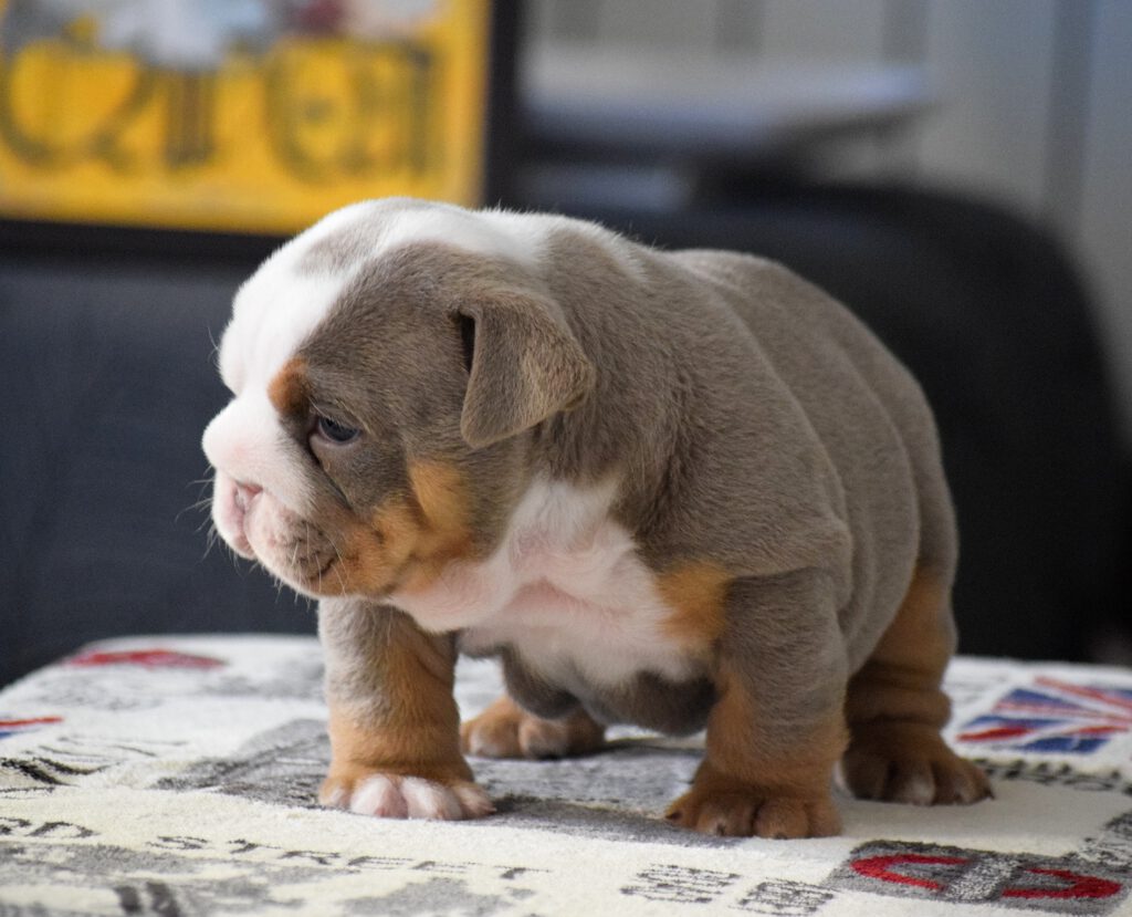 La pequeña Golden Girl.. Lo tiene todo en el paquete mas pequeño, pecho profundo, imponente cabeza, arruga, bajita, corta y como no.. Lilac tricolor